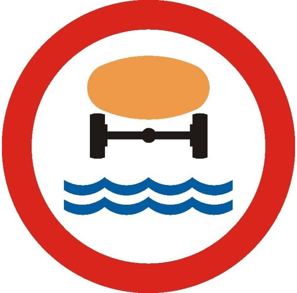 Znak B-14 montowany jest przede wszystkim w poblizu ujec wody pitnej zbiornikow wodnych stref ochronnych zaopatrzenia w wode oraz na odcinkach drog przebiegajacych przez tereny szczegolnie narazone na skazenie wod. Jego zadaniem jest wyeliminowanie z danego odcinka ruchu pojazdow przewozacych towary niebezpieczne mogace zanieczysc zasoby wodne. Stosuje sie go wylacznie tam gdzie istnieje mozliwosc skierowania ruchu na trasy alternatywne takie jak obwodnice mosty ponizej ujecia czy drogi omijajace tunele.