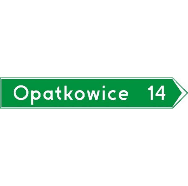 Znak E-4 - Drogowskaz w kształcie strzały do miejscowośc - Generacja II